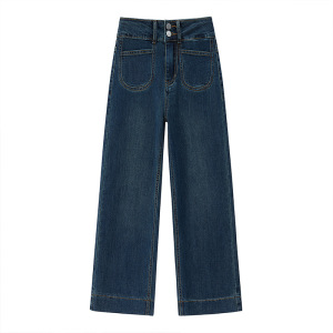 2228#丹宁色九分单裤(身高159以上拍)