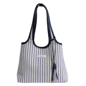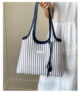 レディースバッグ外国貿易ストライプキャンバスバッグレディース大容量新しいファッション多用途ショルダーバッグ大学生クラスのトートバッグ