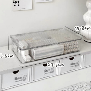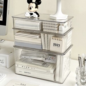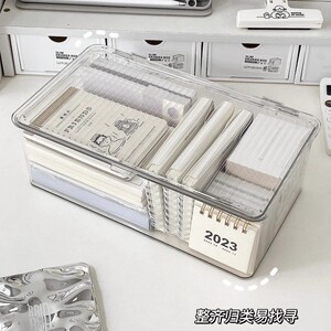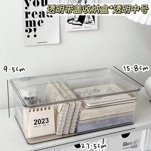 亚克力收纳盒桌面透明带盖整理盒大容量防尘办公室书桌文具收纳箱
