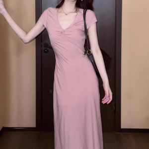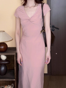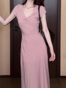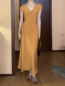 バイアスカットスリムウエストドレス2025夏4色フレンチスタイルAラインロングスカート
