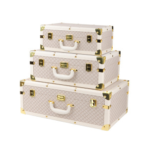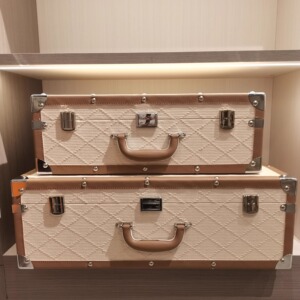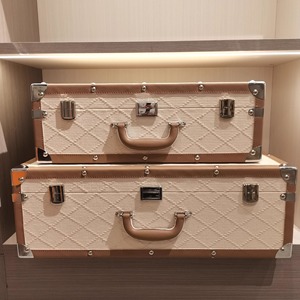 ライトベージュ植毛レザーモデルルームスーツケースソフトデコレーションホームクローク収納ボックス展示ホール ⭐ 在庫あり