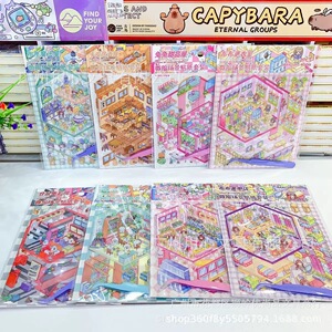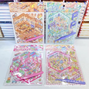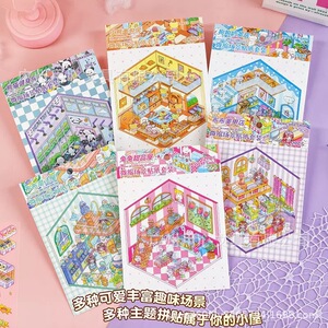 创意手工DIY微缩场景贴纸带镊子套装儿童益智玩具贴纸3d立体小屋