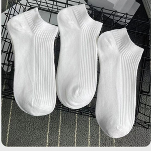 0349 メンズ ボートソックス ホワイト 細いカラーストライプ