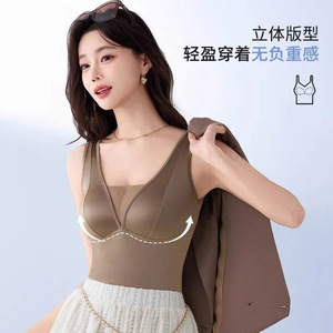 外国貿易クロスボーダーホットスタイルサテンメッシュスプライシングスリムボトミングベスト女性用胸パッド付き夏薄い大きいサイズの下着