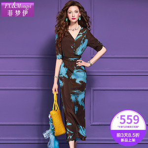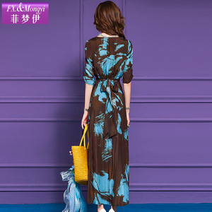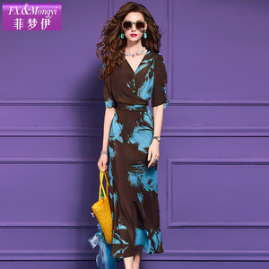 Feimengyi 模擬シルク絞り染めプリントドレス女性の夏のレトロシックなハイエンド気質シルクスカート