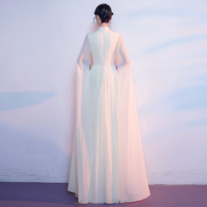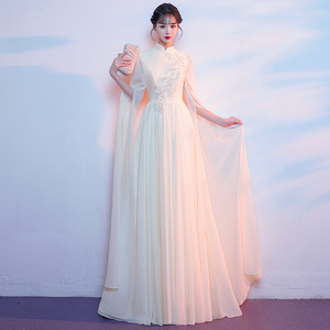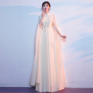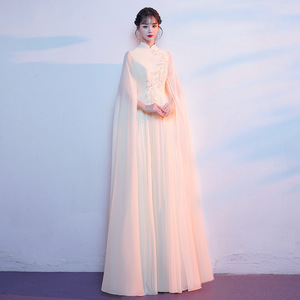 シャンパンカラーコーラスパフォーマンス衣装女性のロングスカート古筝民族音楽ホスト朗読ハイエンド年次パーティードレス芸術試験