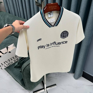 ヨーロッパとアメリカのカジュアルファッションルーズVネックストライプ男性と女性の同じスタイルのルーズサマーニットウェア