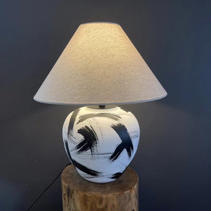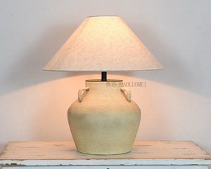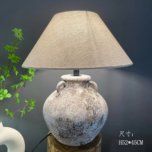 日本のわびさびスタイルの土陶テーブルランプ中国の粗いセラミックリビングルームホテルB&Bデザイナー寝室のベッドサイドランプ装飾