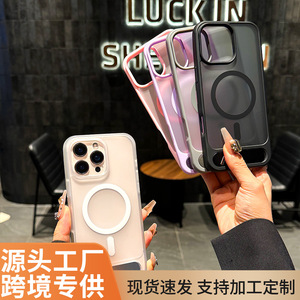 iPhone16promax 肌のようなつや消し磁気電話ケースクリエイティブスタンドインビジブルブラケット P 保護カバーに適しています