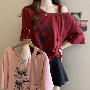 大码设计感满天星短袖t恤女夏季2025新款宽松显瘦百搭吊带上衣女