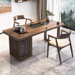 金沙简约实木茶桌椅组合办公室洽谈泡茶桌子家用会客功夫茶几茶台