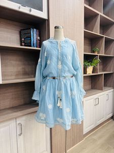 在庫あり Wang Yuwen の同じスタイルのフレンチレトロルーズ年齢軽減レースアップ刺繍ハイエンドランタンスリーブウエストドレス