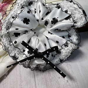 オリジナル手作り重厚黒四つ葉のクローバーリボンヘアゴムヘアゴムゴムバンド水玉ヘアロープ新しいスタイル