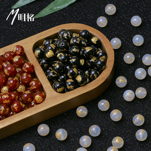 天然玛瑙五路财神烫金刻字民族国风DIY饰品配件串珠玛瑙散珠批发