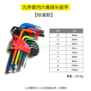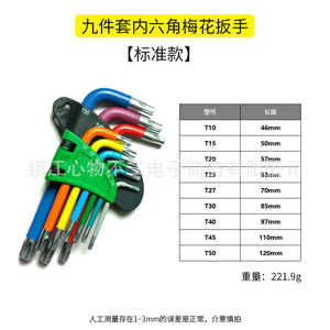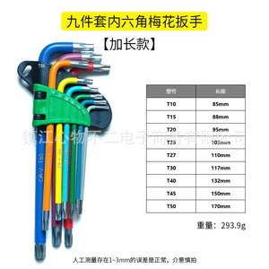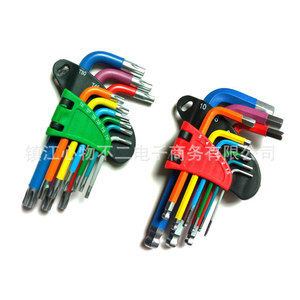 9本組カラフル六角レンチ、ボールヘッド梅花レンチ、中長CR-V鋼レンチ、ドライバー工具、折りたたみ式、越境販売