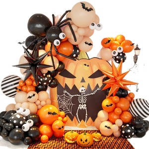 ハロウィンバルーンガーランドアーチキット 3D コウモリブラックオレンジボールハロウィン誕生日パーティーの装飾用