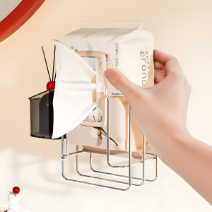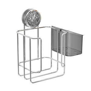 吸盘铁艺纸巾架+收纳盒-透明灰