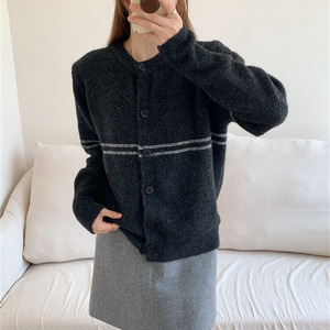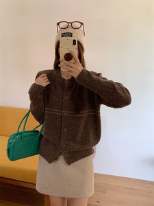 秋冬针织衫女2025韩系新款设计感撞色单排扣简约休闲圆领毛衣外套