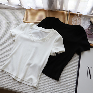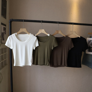 [Bizheng] 2025 初秋新作韓国風ラウンドネックスリムフィットカジュアルショート万能半袖 T シャツ女性用 4514