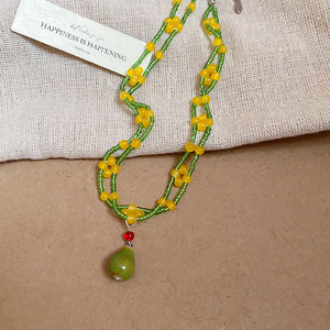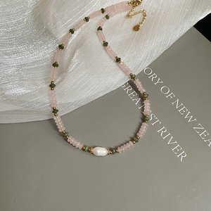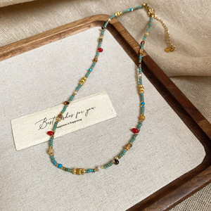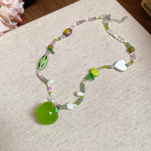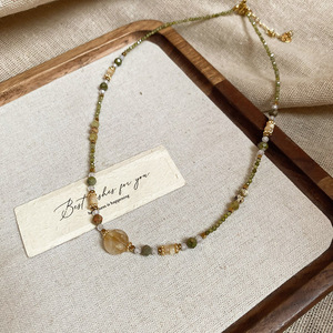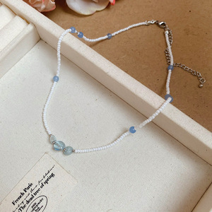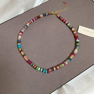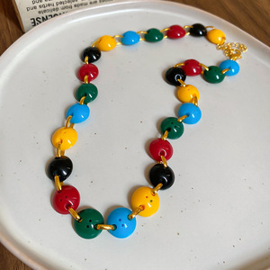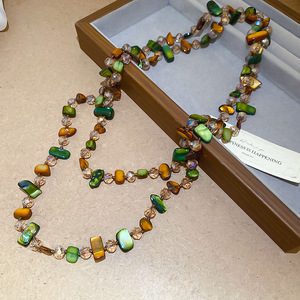 夏のドーパミン色ガラスクリスタルビーズネックレスライト高級ハイエンド鎖骨チェーンデザインニッチネックレス
