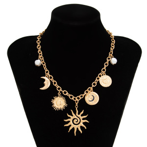 ヨーロッパとアメリカのクロスボーダーレトロメタルサンアンドムーンペンダントネックレスハイエンドニッチコンク貝鎖骨チェーン