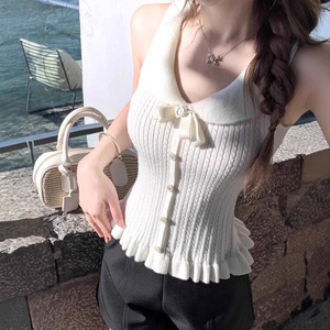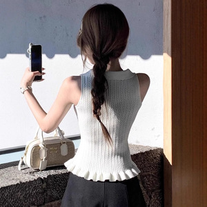 韩版娃娃领针织小背心女2025夏季新款修身洋气短款无袖针织上衣