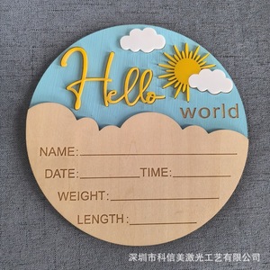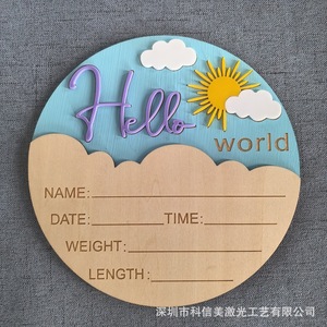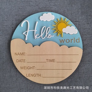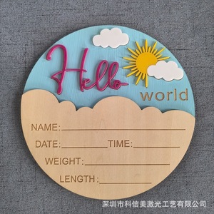 Hello World ハローワールド 新生児パーティー ウッドチップ 記念カード 写真記念ウッドチップ 新生児