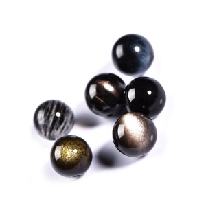 天然水晶ルースビーズ黒曜石金運石黒髪クリスタルシングルビーズ diy ビーズゴールドとシルバービーズメーカー承認