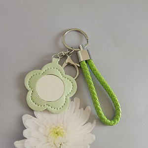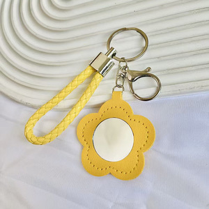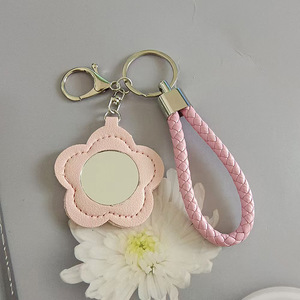 创意花朵小镜子真皮编织绳钥匙扣小镜子补妆便携包包挂件饰品配件
