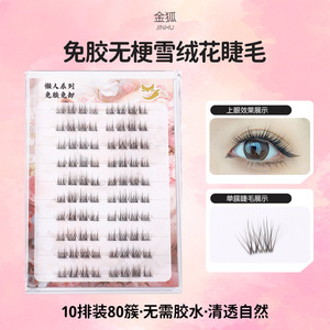 10排免胶雪绒花月牙泉睫毛浓密自然仿真嫁接感漫画眼新手轻薄新品