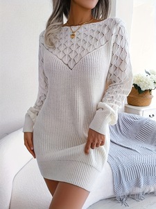 クロスボーダープラスサイズの女性中空ラウンドネックセーター秋と冬のスリムドレスカジュアル長袖セーターエレガントなプルオーバー