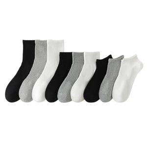 メンズショートソックス、純綿ソックス、メンズ吸汗性黒白グレーミッドカーフソックス、ボーイズスポーツロングホワイトソックス、薄手のホワイトソックス