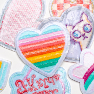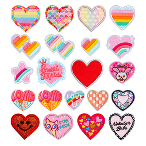 彩虹爱心桃心刺绣布贴可爱卡通粉色系心形图标外贸跨境电脑绣花贴