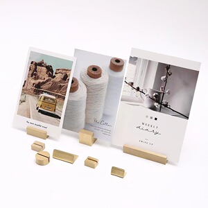 金属ロングストリップ幾何学的な真鍮名刺ホルダーデスクトップ装飾フォトホルダーテーブルカードベースシンプルなカードディスプレイスタンド