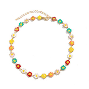 カラフルなデイジーフラワーネックレス女性のための夏の小さな新鮮な多用途ビーズ鎖骨チェーンデザインホットガールアクセサリー