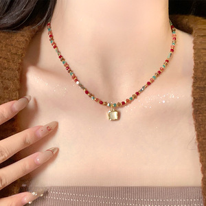 カラフルなビーズキャッツアイペンダントネックレス女性のための新しい中国風のライト高級ニッチハイエンド鎖骨チェーンレトロアクセサリー