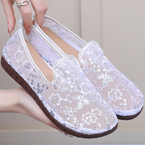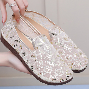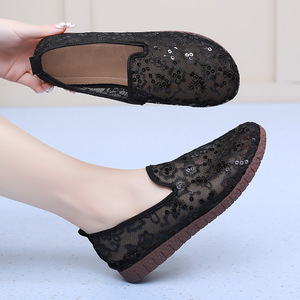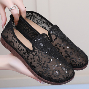 夏中空女性の通気性メッシュママシューズスリッポンフラットファッションサンダル古い北京布靴カジュアルシューズ