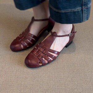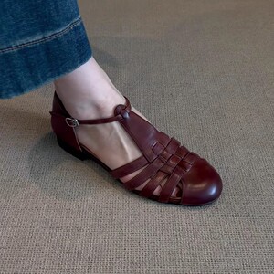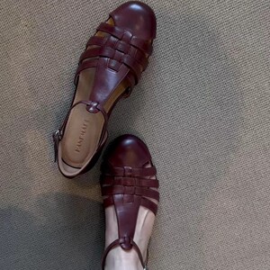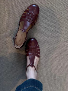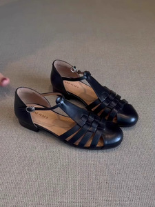 シープスキンバージョン〜フレンチレトロスタイル中空織サンダル女性用2025新しいラウンドトゥフラットローマンスタイルの女性の靴