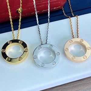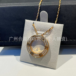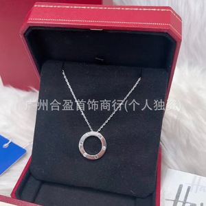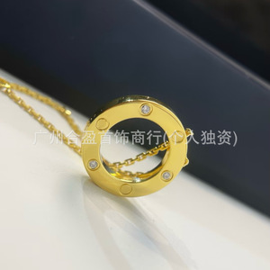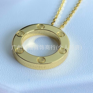 V金高版本LOVE系列大饼项链CNC粗链条对版满天星吊坠玫瑰金锁骨链