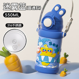 新しい 316 ステンレス鋼の子供用魔法瓶カップ、学校に行く学生用、ポータブルストラップ付きウォーターカップ、厚みのある落下防止ストローカップ