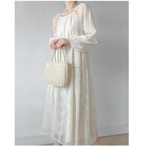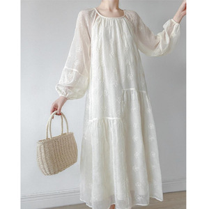 法式气质茶歇温柔风独特连衣裙超好看2025春季宽松显瘦长袖裙子女