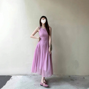 DARA ROSE 本格サマーフレンチ高級感プリーツノースリーブベストワンピース 5593
