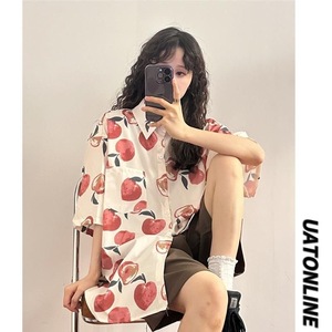 オーバーサイズ日本ハワイピーチフルプリント半袖シャツメンズ夏香港スタイルカップル半袖花柄シャツ