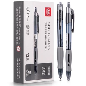 得力S08按动中性笔臻顺滑水性笔子弹头0.5mm黑色签字笔按压水笔芯