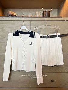 【クリアランス返品交換不可】春の小さなVラペル刺繍レターセーター+細プリーツスカート女性用ファッションスーツ