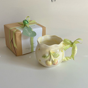 博主款手作不规则清新可爱樱桃艺术小众马克杯陶瓷杯酷酷