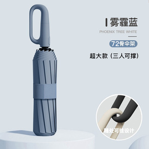 【ポータブルフック】72本骨 オートマチック 【10×6二段三本骨】晴雨兼用ヘイズブルー