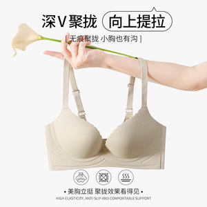 女性用の滑らかな立体花びらカップブラジャー、シームレスなプッシュアップ、小さな胸が大きく見える、サイドリフト、たるみ防止、空カップ下着