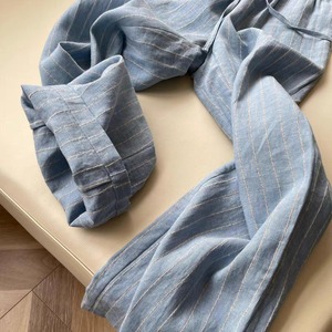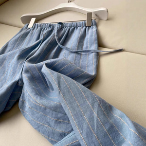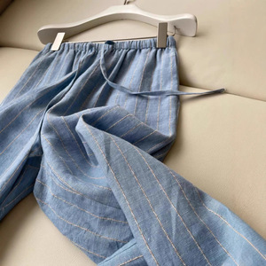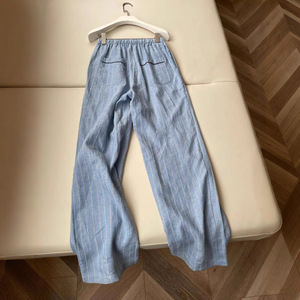 強くお勧めします!ブルーストライプレンジンワイドレッグパンツ女性用2025夏新作通勤多用途快適カジュアルパンツ