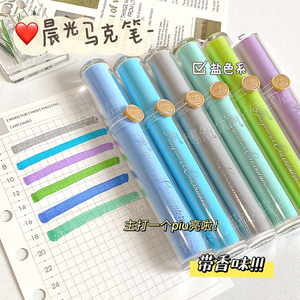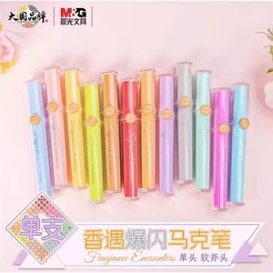 晨光香遇爆闪马克笔软笔头12色荧光笔内含珠光细闪香味一色一香学